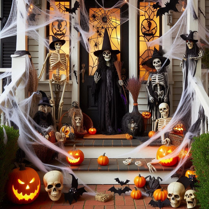 A: Some tips for decorating your front door for Halloween include using a witchy wreath, adding some spider webs, and hanging a few ghostly decorations.
